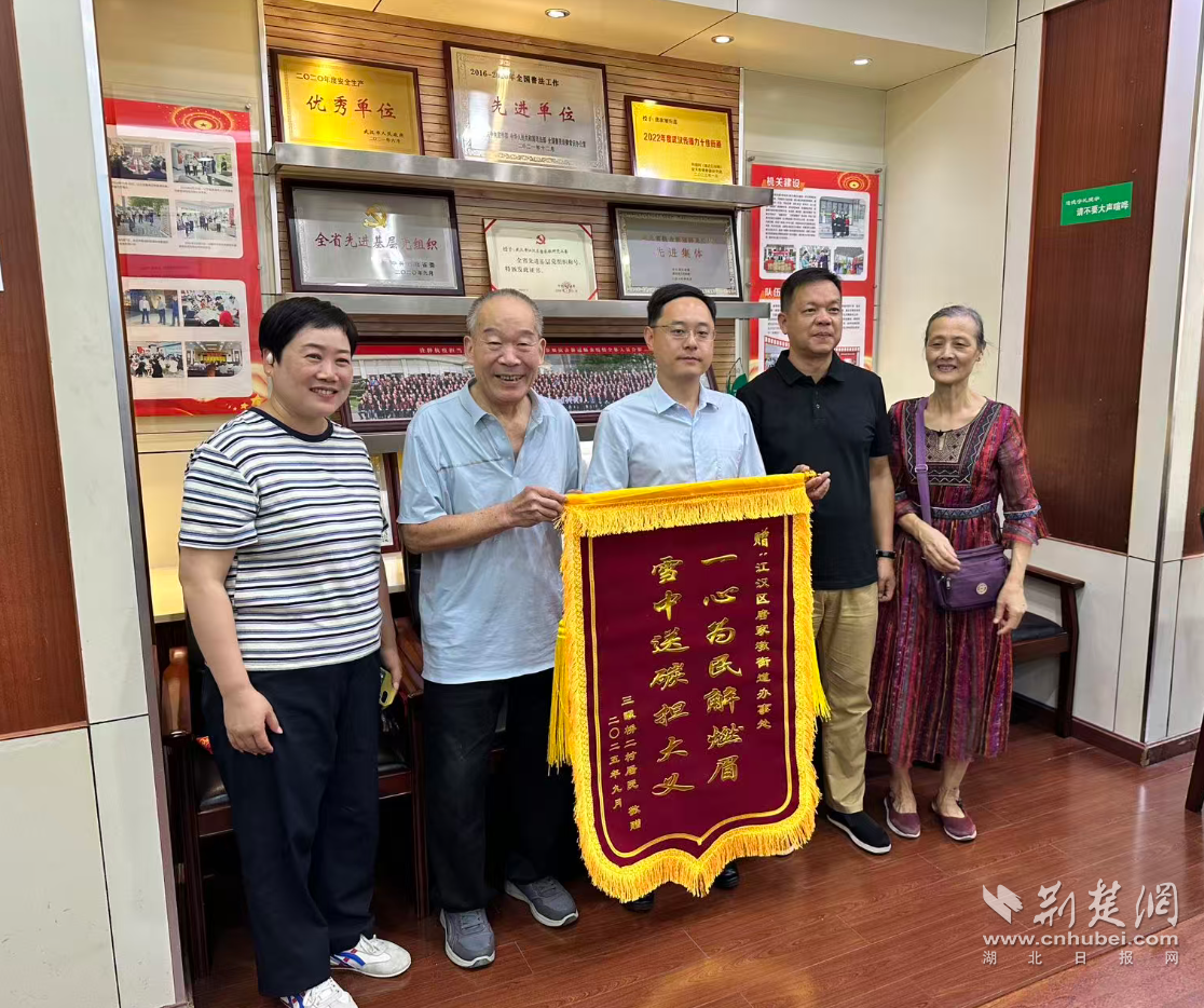 10月10日上午,武漢三眼橋二村52-54號的居民代表手捧一面寫有“一心為民解燃眉,雪中送炭擔大義”的錦旗,走進江漢區(qū)唐家墩街道辦事處,用最樸實的方式表達他們的感激之情。