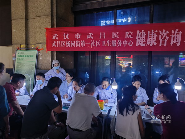 當(dāng)日,隨著夜色降臨,義診桌前臺燈逐一亮起。來自武昌醫(yī)院消化內(nèi)科、呼吸內(nèi)科等科室的專家醫(yī)師現(xiàn)場坐診,就常見的慢性病管理、飲食養(yǎng)生及用藥安全等問題,為居民進行耐心解答,并對不同病癥的居民給出個性化的健康指導(dǎo)。社區(qū)衛(wèi)生服務(wù)中心婦??频尼t(yī)生也忙碌其中,為女性居民提供婦科健康咨詢與知識科普。