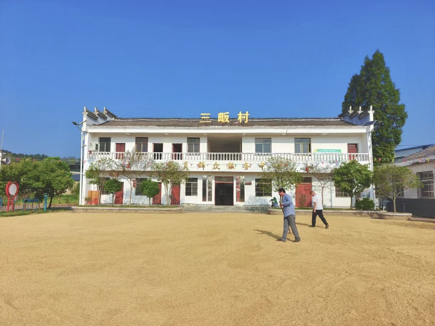 連日來(lái),該鎮(zhèn)各大村委會(huì)門(mén)前廣場(chǎng),總是一派繁忙喜悅景象:金燦燦的稻谷鋪就“黃金毯”,村“兩委”黨員干部穿梭其間,彎腰翻曬、快手裝袋,幫村民搶收糧食——這片平日的村民活動(dòng)場(chǎng),如今成了全鎮(zhèn)16村“公共曬場(chǎng)”的生動(dòng)縮影。