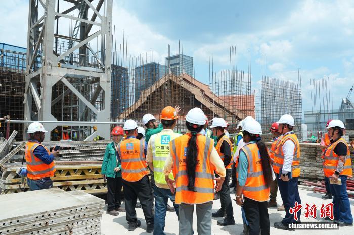 與會各國代表參觀中建柏威年廣場工地。主辦方供圖