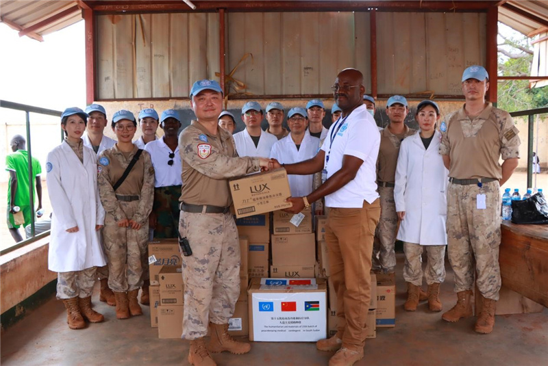 中國維和醫(yī)療分隊(duì)向當(dāng)?shù)鼐栀涐t(yī)療物資。魯振輝攝