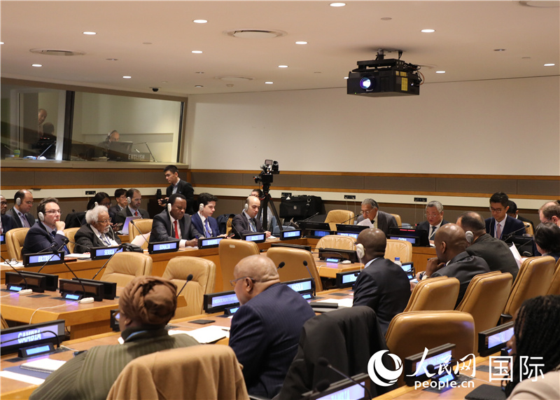 中國常駐聯(lián)合國代表傅聰主持會議并作主旨發(fā)言。人民網(wǎng)記者 李志偉攝
