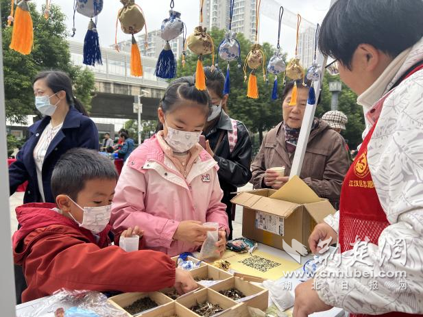 體驗區(qū)里,社工帶領孩子們動手制作茱萸香囊,講述“佩茱萸祈福避災”的古老風俗。孩子們捧著親手做好的香囊,迫不及待地想送給家里的長輩。公益集市的人氣更是高漲,非遺絨花攤位展示傳統(tǒng)之美,慈善義賣匯聚鄰里愛心,植物醫(yī)生攤位傳遞健康養(yǎng)生理念。
