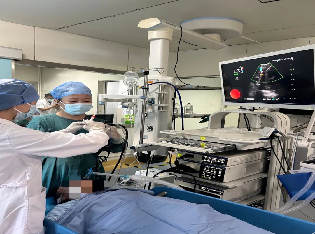 呼吸與危重癥醫(yī)學科副主任醫(yī)師劉鈞、主治醫(yī)師邱琦牽頭組建診療團隊,經(jīng)周密術前討論,決定采用全麻喉罩下超聲引導穿刺針建隧的縱隔淋巴結活檢技術(EBUS-TBNB)。