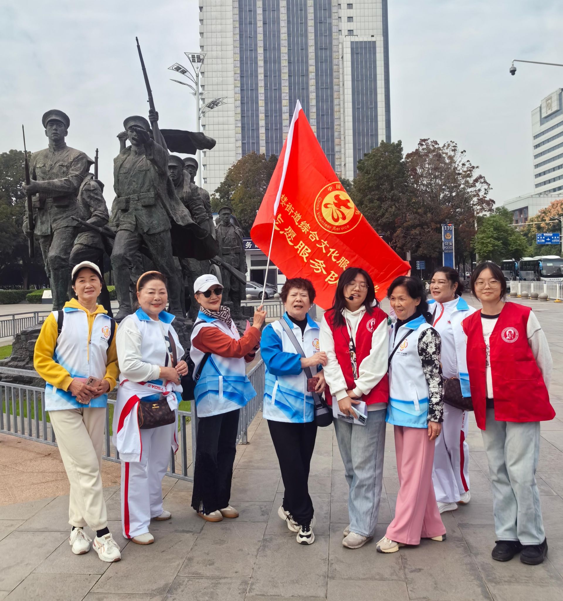 活動當日上午,參與人員在武漢長江大橋集結(jié)出發(fā)。隊伍配備志愿者與醫(yī)護人員全程護航,確保活動安全有序。行進路線串聯(lián)起陳友諒墓、“三井一臺”、孫中山銅像、首義廣場等轄區(qū)重要文化地標,形成一條獨具特色的“文化探秘路線”。