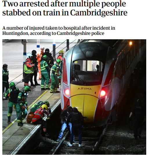 中新網(wǎng)11月2日電 據(jù)英國(guó)《衛(wèi)報(bào)》報(bào)道,當(dāng)?shù)貢r(shí)間11月1日,英國(guó)一前往劍橋郡亨廷登的火車上發(fā)生持刀行兇事件,已有兩人被警方逮捕。