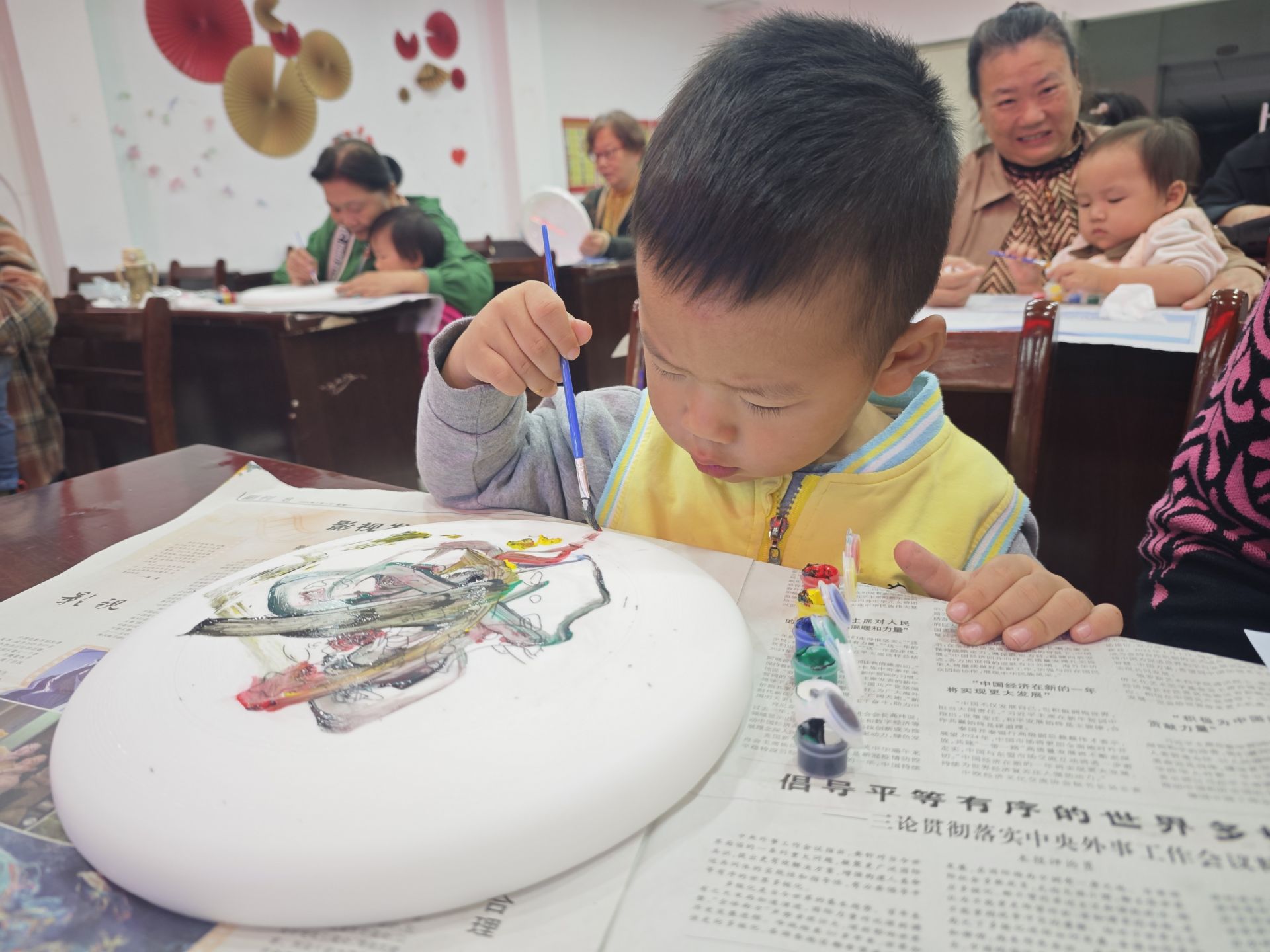飛盤游戲環(huán)節(jié)設(shè)計科學(xué)合理,“飛盤當(dāng)方向盤”鍛煉手腕靈活性,“近距離接飛盤”強化手眼協(xié)調(diào)能力。活動全程緊扣0-3歲嬰幼兒發(fā)展需求:認(rèn)知層面通過飛盤感知圖形、辨識基礎(chǔ)色彩;能力層面借助點畫涂鴉訓(xùn)練手部精細(xì)動作;情感層面通過親子協(xié)作增進依戀關(guān)系;社交層面鼓勵幼兒展示作品,萌發(fā)初步的社交意識。