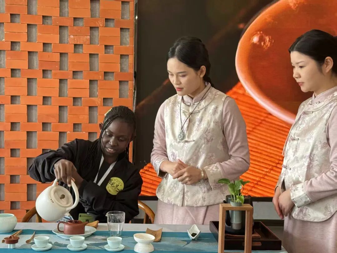 這場跨越國界的“重走茶道 遇見東方”之旅,也激發(fā)出年輕學(xué)子們成為文化傳播橋梁的心愿。來自泰國的中國地質(zhì)大學(xué)學(xué)生張明誠在行程中一直用鏡頭記錄,“我拍了好多視頻,為了給泰國人介紹青磚茶,因為我覺得大部分泰國人不知道青磚茶是什么?!彼皬奈匆娺^磚形的茶,卻在品嘗后驚喜于其醇厚與留香,漸漸喜歡上這一獨特的中國茶韻。
