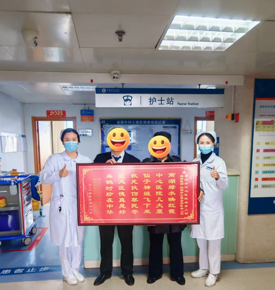 荊楚網(wǎng)(湖北日報(bào)網(wǎng))訊(通訊員 顏飛)“金杯銀杯不如患者的口碑!” 近日,孝感市中心醫(yī)院泌尿外科II病區(qū)暖意融融,已康復(fù)出院的82歲患者錢爺爺在家人的陪伴下,專程回到醫(yī)院,將一塊鐫刻著對醫(yī)護(hù)人員感激之情的牌匾,鄭重地交到了醫(yī)護(hù)人員手中。
