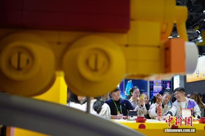 11月6日,上海,第八屆中國國際進口博覽會消費品展區(qū)人氣旺。圖為樂高展臺吸引參觀者。中新社記者 蔣啟明 攝