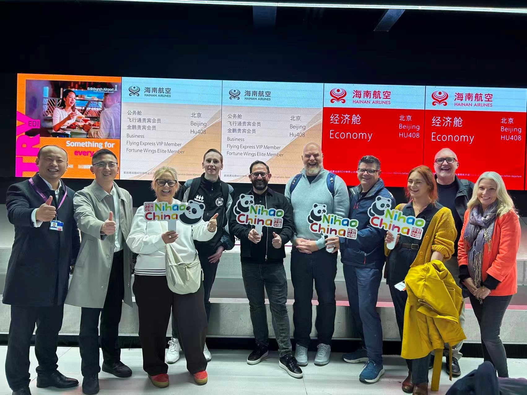 愛丁堡赴華旅游踩線團(tuán)搭乘海南航空前往中國。主辦方供圖