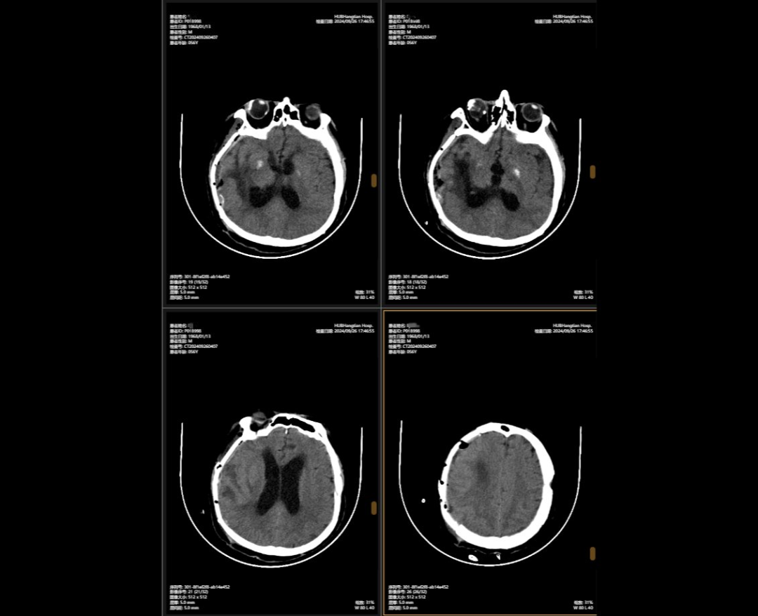 2024年5月,56歲的李先生(化名)不幸遭遇嚴重車禍,當場昏迷,生命垂危。他被緊急送往湖北航天醫(yī)院后,檢查結果讓所有人心頭一緊:他的頭部受到嚴重撞擊,不僅有多處出血,腦組織也有挫傷,甚至連呼吸心跳的“總司令部”——腦干都受了傷。除此之外,還有顱骨、頸椎和多處肋骨骨折,情況萬分危急。