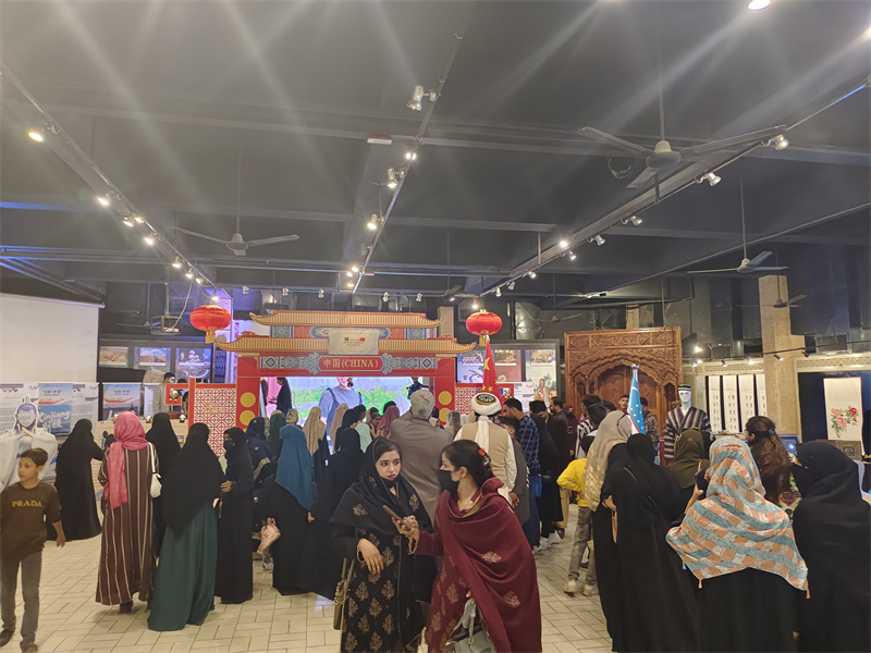 中國(guó)旅游文化周活動(dòng)展區(qū)吸引大量當(dāng)?shù)孛癖婑v足參觀。中國(guó)駐巴基斯坦使館供圖