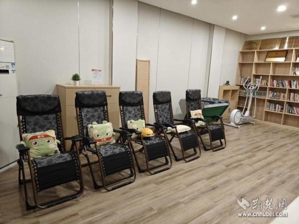 走進這個330平方米的升級版驛站,變化隨處可見。這里不僅有基礎的微波爐、冰箱、沙發(fā)等,更添置了共享淋浴間、聽書機、直飲機、空調等。曾經的后廳,如今被打造成一個多功能“潮玩空間”——午休時間,拉上窗簾,這里是配備了舒適躺椅的靜謐午睡室;工作之余,這里又變身為熱鬧的“社交俱樂部”,大家可以一起看電視、玩桌游,徹底放松身心。