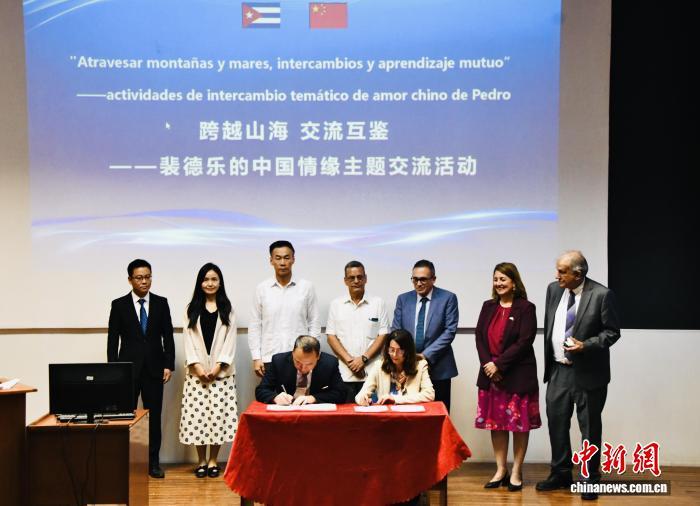 當(dāng)?shù)貢r(shí)間11月10日,“跨越山海 交流互鑒”裴德樂的中國(guó)情緣主題交流活動(dòng)在位于古巴首都哈瓦那的古巴神經(jīng)科學(xué)中心舉行,中國(guó)電子科技大學(xué)與古巴信息技術(shù)和高級(jí)遠(yuǎn)程服務(wù)公司簽署合作備忘錄。(主辦方供圖)