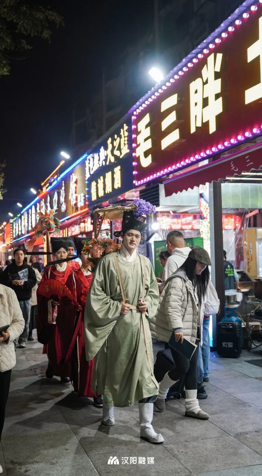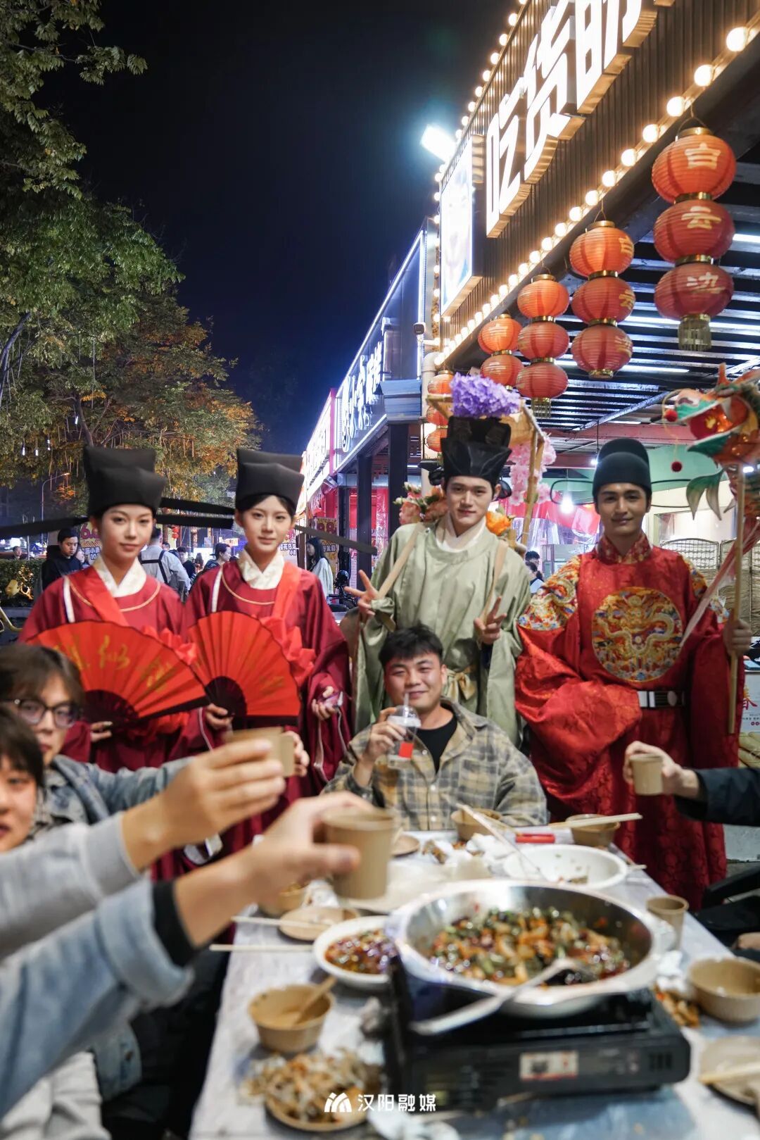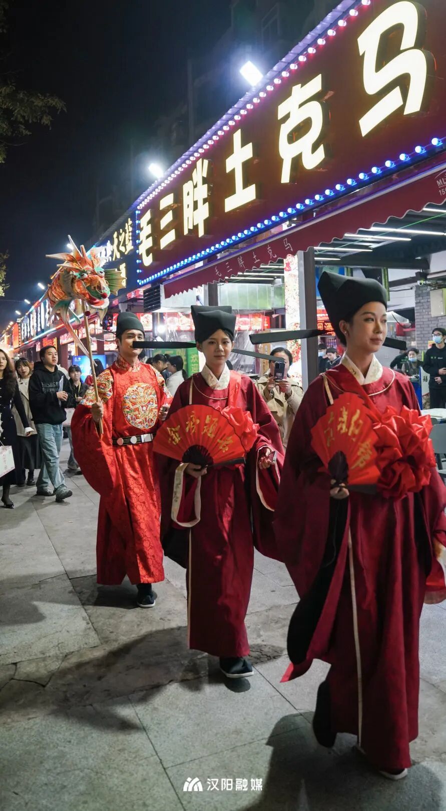 今晚,頭戴烏紗帽、身著飛魚服的“狀元郎”化身“首席引烤官”,帶領(lǐng)舉人秀才巡街互動,一句“客官骨骼清奇,必是吃貨轉(zhuǎn)世”逗樂全場。更勁爆的是,“知音漢陽”視頻號直播間狂撒福利:無敵燒烤、毛大佑、老油條等10家名店“限時霸王餐”線上直送,解鎖免費擼串的快樂!