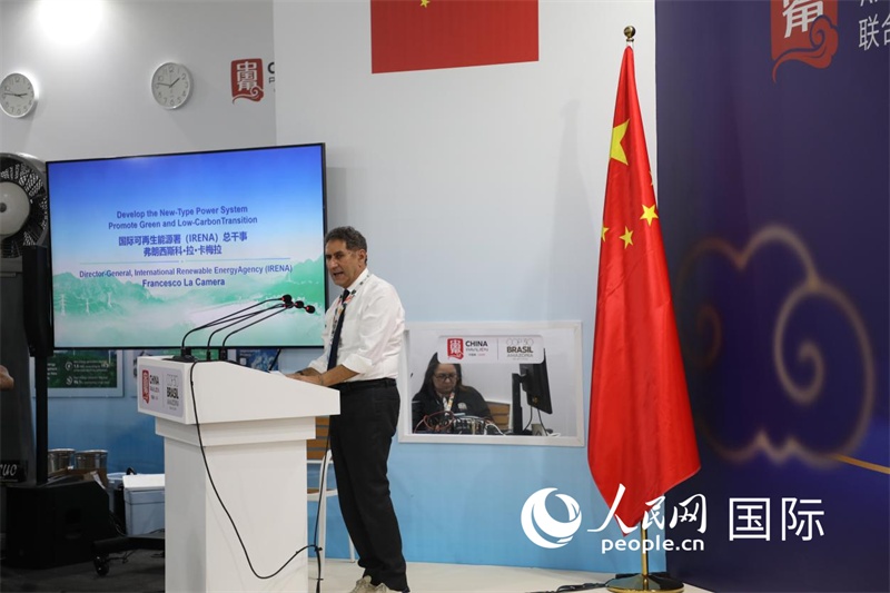國(guó)際可再生能源署總干事卡梅拉致辭。人民網(wǎng)記者 陳一鳴攝