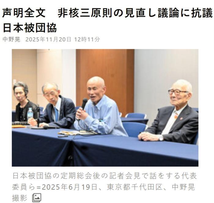中新網(wǎng)11月20日電 據(jù)日本《朝日新聞》報道,當?shù)貢r間20日,日本原子彈氫彈爆炸受害者團體協(xié)議會就日本首相高市早苗考慮修改“無核三原則”一事發(fā)表致高市的聲明,稱“這將顛覆迄今為止的政府見解,強烈抗議開啟修改‘三原則’的討論”。