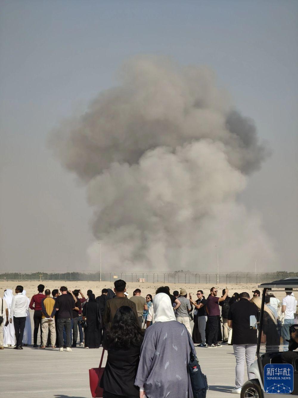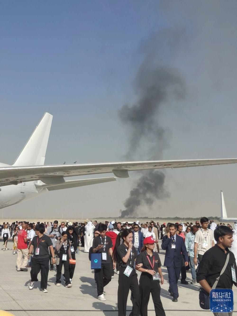 11月21日,在阿聯(lián)酋迪拜,飛機(jī)墜毀現(xiàn)場冒出滾滾濃煙。
