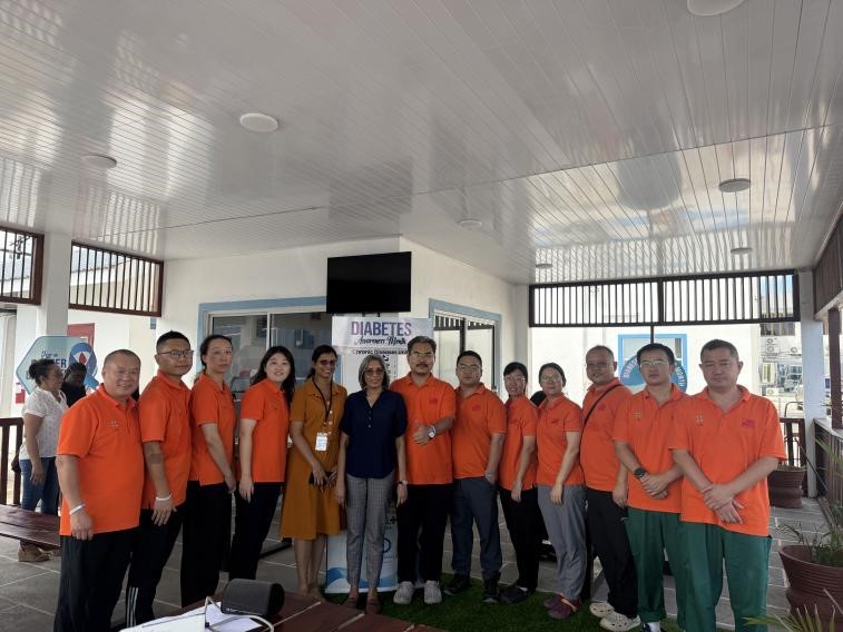 援圭亞那中國(guó)醫(yī)療隊(duì)隊(duì)員與當(dāng)?shù)匦l(wèi)生人員合影。第21批援圭亞那中國(guó)醫(yī)療隊(duì)供圖