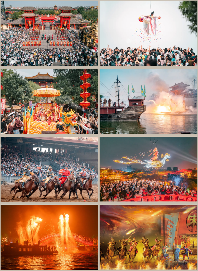 狂歡節(jié)期間,大宋百戲全新升級!經(jīng)典精彩演出:《包公迎賓》《大宋飛天秀》《王員外招婿》《岳飛槍挑小梁王》《大宋·東京保衛(wèi)戰(zhàn)》《岳飛·郾城大捷》《鐵花慶歸航》《打鐵花之盛世大宋》……