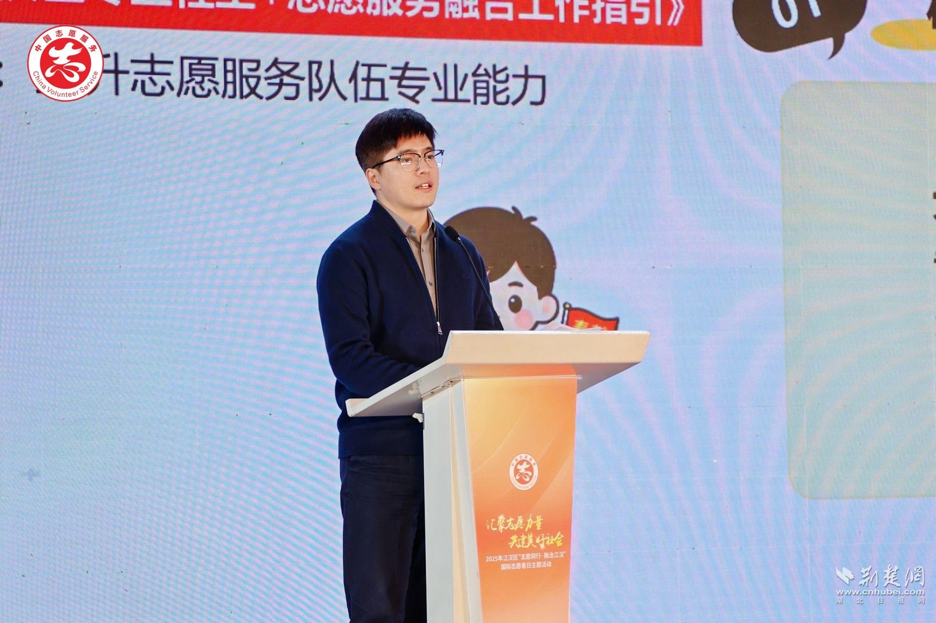 活動伊始,武漢市委社會工作部相關負責人首先傳達了習近平總書記給中國志愿服務聯(lián)合會的賀信精神并致辭?!百R信對新時代志愿服務工作提出了更高要求,也為全市志愿服務事業(yè)高質(zhì)量發(fā)展指明了方向。”他表示,江漢區(qū)作為武漢志愿服務的重要力量,要在志愿服務專業(yè)化、品牌化和社會化方面持續(xù)探索,推動志愿服務更聚焦民生所需,更貼近基層治理實際,讓志愿精神在江漢持續(xù)發(fā)光發(fā)熱。