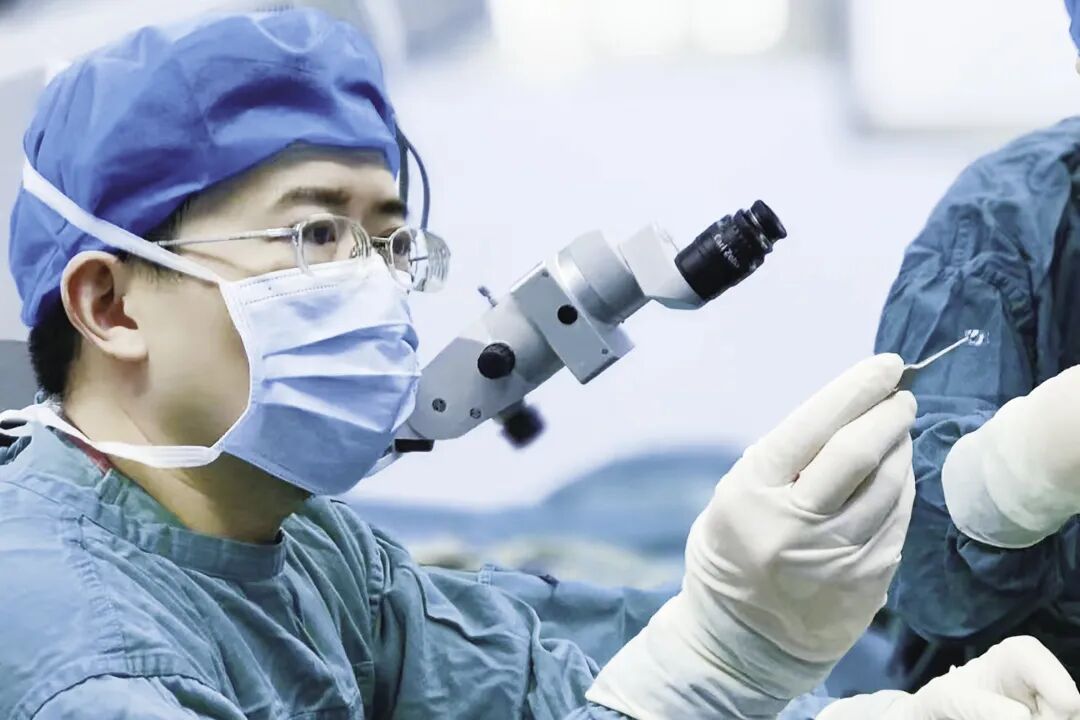 走進(jìn)眼科手術(shù)室,無影燈下的顯微手術(shù)臺(tái)宛如精密儀器車間。李銳主任正在為增殖性糖尿病視網(wǎng)膜病變患者實(shí)施微創(chuàng)玻璃體切除術(shù),厚度50微米的視網(wǎng)膜前膜、3微米的視網(wǎng)膜內(nèi)界膜,手術(shù)中可能需要?jiǎng)冸x,醫(yī)生就像是針尖上的舞者。“這種復(fù)雜的糖網(wǎng)手術(shù),三年前還需要轉(zhuǎn)診武漢,現(xiàn)在我們已經(jīng)獨(dú)立完成30例”器械護(hù)士輕聲介紹。