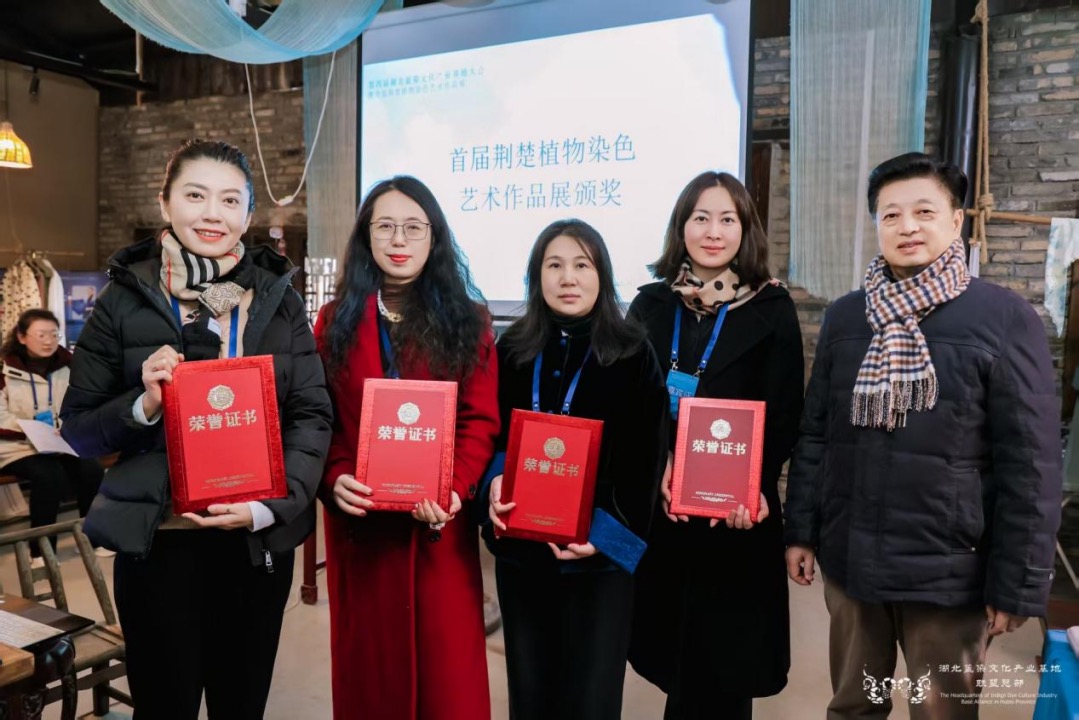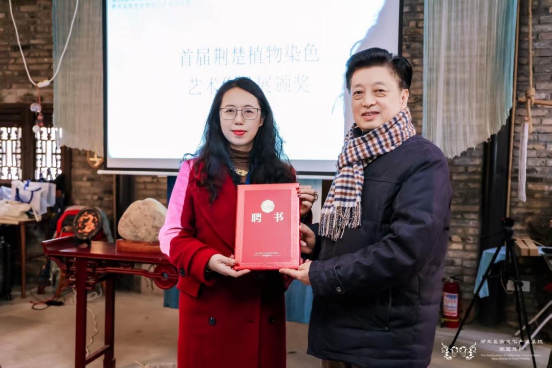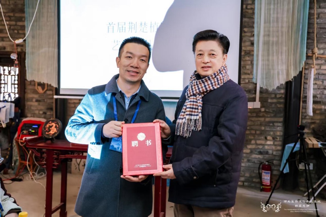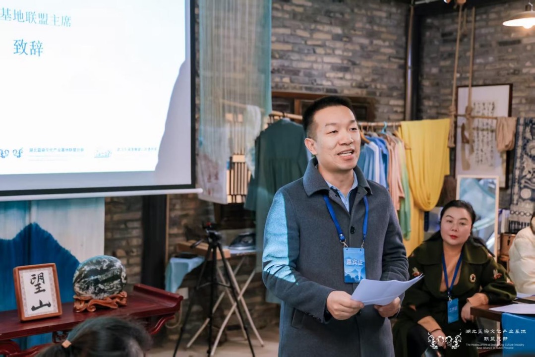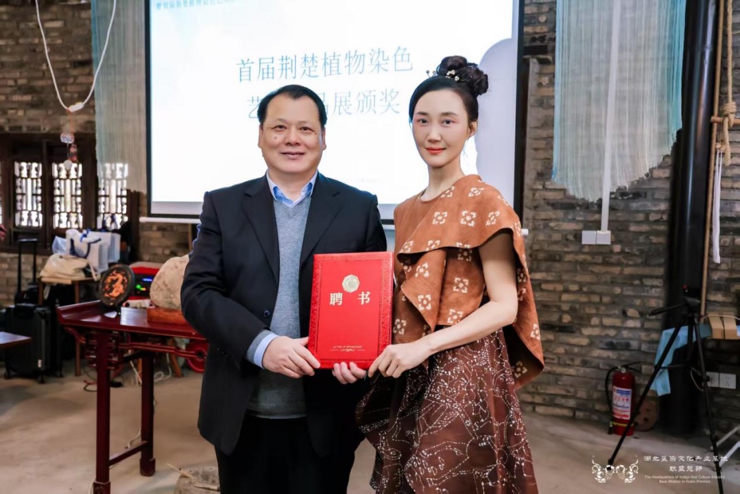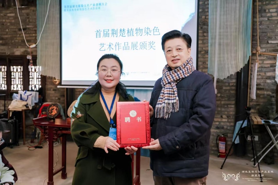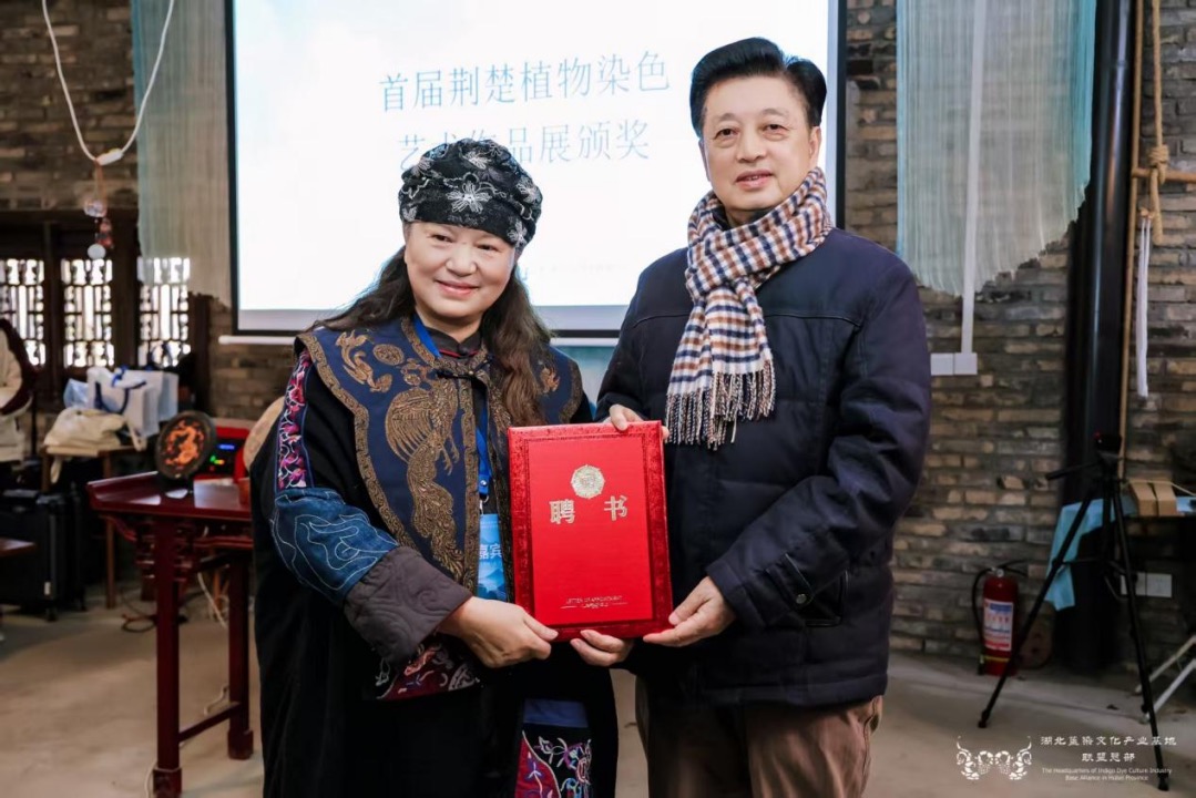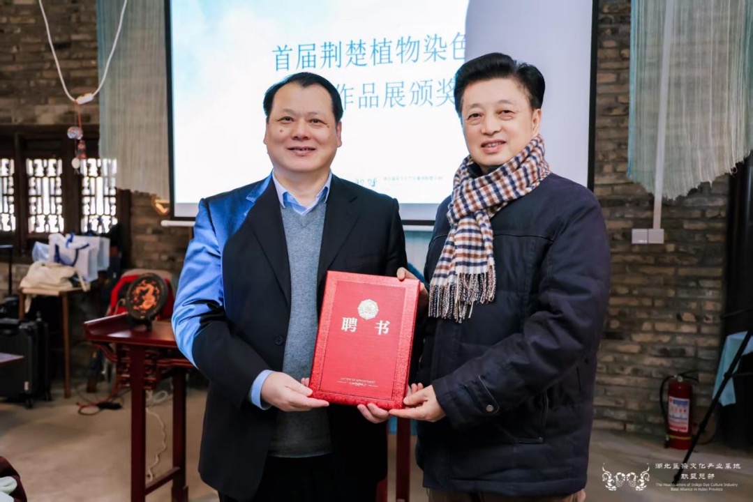 大會(huì)舉行了新一屆聯(lián)盟任職授聘儀式,聘請(qǐng)華中師范大學(xué)國(guó)家文化產(chǎn)業(yè)研究中心主任孫傳明教授擔(dān)任湖北藍(lán)染文化產(chǎn)業(yè)基地聯(lián)盟主席,華中師范大學(xué)研究員石煒、西安美術(shù)學(xué)院教授石歷麗、武漢紡織大學(xué)副教授王妮、黃岡藍(lán)靛染色省級(jí)非遺傳承人陳小蓮擔(dān)任湖北藍(lán)染文化產(chǎn)業(yè)基地聯(lián)盟副主席。湖北中華文化促進(jìn)會(huì)常務(wù)副主席肖安民向?qū)O傳明、石煒、石麗歷、王妮、陳小蓮頒發(fā)聯(lián)盟聘任證書。聯(lián)盟主席孫傳明向王子丹、于棟、孟小琴和楊青華頒授聯(lián)盟秘書長(zhǎng)聘書,向陳玲、王玲超、朱小妮、程利頒授聯(lián)盟副秘書長(zhǎng)聘書;聯(lián)盟副主席石煒向武漢紡織大學(xué)郭海燕副教授頒授藍(lán)染文化產(chǎn)業(yè)基地聯(lián)盟特聘秀導(dǎo)聘書。