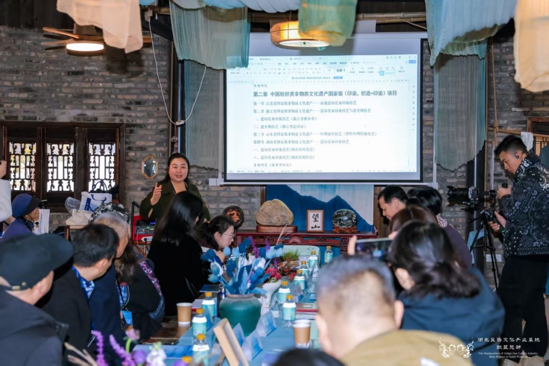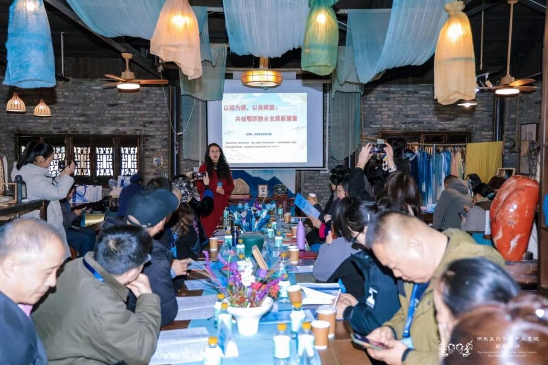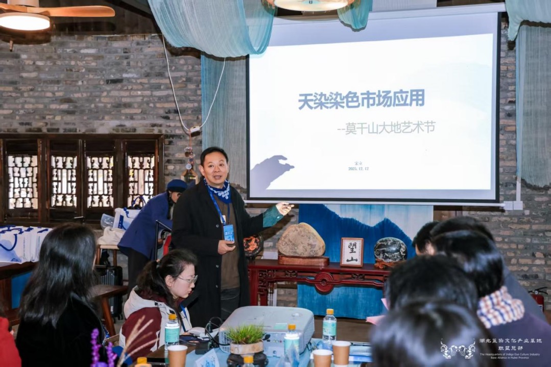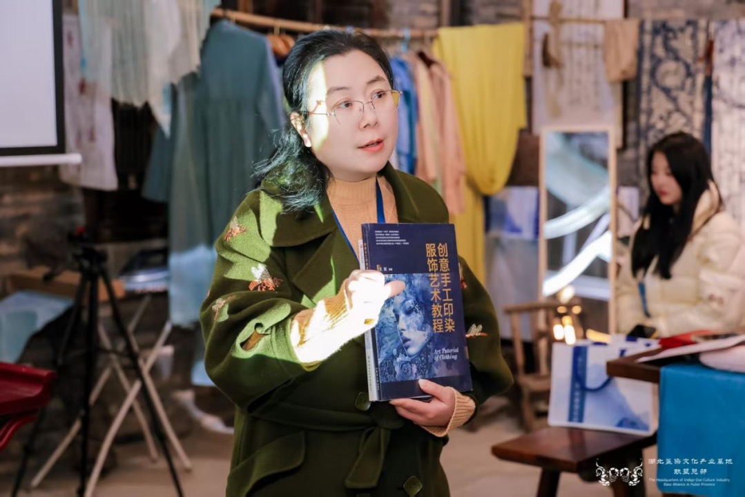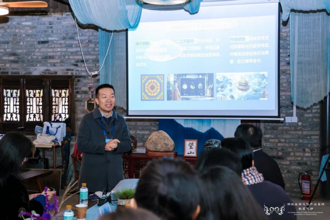 論壇環(huán)節(jié)分為“專家論壇”與“傳承人論壇”兩大板塊。在專家論壇板塊,華中師范大學(xué)國(guó)家文化產(chǎn)業(yè)研究中心孫傳明教授分享了“AI時(shí)代紡織類非遺的創(chuàng)新性發(fā)展”,并通過(guò)豐富的案例探討了AI技術(shù)對(duì)紡織印染類非遺的創(chuàng)新性轉(zhuǎn)化與創(chuàng)造性發(fā)展。西安美術(shù)學(xué)院石歷麗教授分享了“以染為媒,以美賦能,共創(chuàng)鄂陜?nèi)诤习l(fā)展”的思考。德清集彩文化創(chuàng)意有限公司宋立董事長(zhǎng)分享了“天然染色市場(chǎng)應(yīng)用”。中國(guó)紡織工程學(xué)會(huì)非遺印染科普傳播專家、武漢紡織大學(xué)王妮副教授分享了“中國(guó)紡織非遺印染專題研究概述”。在傳承人論壇板塊,多位來(lái)自武漢、宜昌、襄陽(yáng)、黃岡、天門、江夏等地的非遺傳承人,結(jié)合自身實(shí)踐,講述了藍(lán)染技藝在當(dāng)代的守正創(chuàng)新、工坊運(yùn)營(yíng)與公益融合之路。其中,襄陽(yáng)鴻岳扎染坊主理人朱小妮分享了以植物染技藝助力自閉癥青年就業(yè)的實(shí)踐,展現(xiàn)了非遺融入公益、賦能特殊群體的社會(huì)溫度。