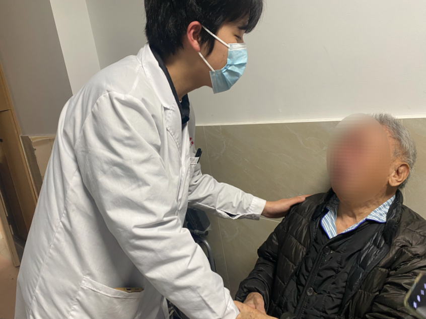 自那以后,每當張子騰查房或從病房前經過,陳爺爺的目光總會緊緊追隨著他。那天護理查房時,陳爺爺一看到張子騰,嘴唇便開始微微顫動,那雙閱盡近一個世紀滄桑的眼睛里,迅速蓄滿了淚水。