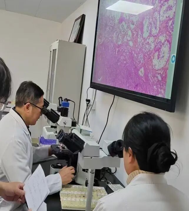 手術(shù)當(dāng)日,當(dāng)“雙側(cè)甲狀腺及中央?yún)^(qū)淋巴結(jié)”標(biāo)本經(jīng)專用通道送達(dá)東城院區(qū)病理科后,一場與生命賽跑的“30分鐘戰(zhàn)役”正式打響。病理科團(tuán)隊嚴(yán)格遵循規(guī)范流程,快速完成標(biāo)本處理、切片制作、染色觀察等系列操作,最終由病理科主任醫(yī)師在顯微鏡下精準(zhǔn)研判,按時出具診斷報告,為臨床手術(shù)方案的實時調(diào)整提供了核心依據(jù)。