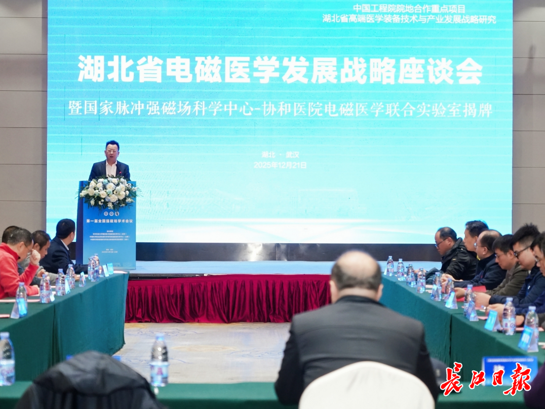 聚焦電磁場(chǎng)技術(shù)與醫(yī)學(xué)應(yīng)用的深度融合,共繪新興醫(yī)療科技產(chǎn)業(yè)發(fā)展藍(lán)圖。12月21日,湖北省電磁醫(yī)學(xué)發(fā)展策略座談會(huì)在武漢召開。此次會(huì)議由中國工程院院地合作重點(diǎn)項(xiàng)目支持,匯聚國內(nèi)電磁物理、臨床醫(yī)學(xué)、產(chǎn)業(yè)轉(zhuǎn)化等領(lǐng)域頂尖力量,系統(tǒng)研判國際前沿趨勢(shì),梳理湖北發(fā)展基礎(chǔ),明確重點(diǎn)突破方向,為我省搶占電磁醫(yī)學(xué)產(chǎn)業(yè)制高點(diǎn)、培育新質(zhì)生產(chǎn)力注入強(qiáng)勁動(dòng)力。
