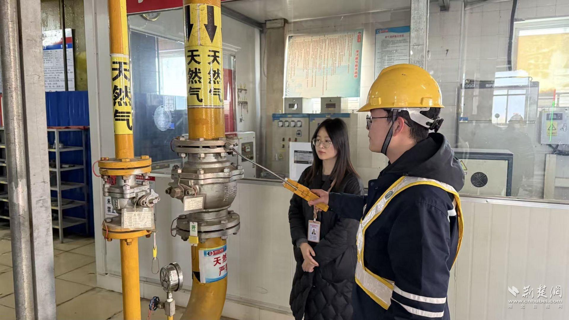 1月7日下午,在湖北武漢雙匯食品有限公司廠區(qū)內(nèi),燃?xì)夤芫W(wǎng)安檢員費(fèi)工一邊檢查天然氣閥門(mén)、調(diào)壓設(shè)備,一邊向企業(yè)負(fù)責(zé)人張寶軍叮囑道。