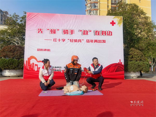 荊楚網(wǎng)(湖北日報(bào)網(wǎng))訊(通訊員 王瑜婷)1月15日,武昌區(qū)南湖街道寶安社區(qū)開展“先‘蜂’騎手,‘救’在身邊——紅十字‘輕騎兵’馬年再出發(fā)”主題活動(dòng)。市、區(qū)紅十字會(huì)及南湖街道相關(guān)負(fù)責(zé)人,外賣、快遞小哥代表齊聚現(xiàn)場,共同見證這支由新就業(yè)群體組成的紅十字“輕騎兵”志愿服務(wù)隊(duì)再啟新程。