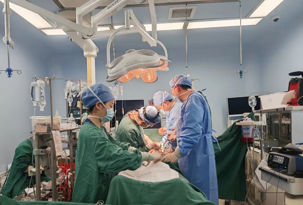 “立即開胸,準(zhǔn)備手術(shù)!”1月12日上午十時(shí),第一例患者確診后,胸心外科廖志敏主任當(dāng)機(jī)立斷。麻醉科、手術(shù)室、體外循環(huán)科、重癥醫(yī)學(xué)科等多學(xué)科團(tuán)隊(duì)迅速集結(jié),術(shù)前評(píng)估、麻醉誘導(dǎo)、器械準(zhǔn)備、體外循環(huán)建立等各項(xiàng)工作同步高效推進(jìn)。手術(shù)臺(tái)上,廖志敏帶領(lǐng)團(tuán)隊(duì)精細(xì)分離血管、置換病變主動(dòng)脈、修復(fù)撕裂內(nèi)膜,步步驚心卻精準(zhǔn)無誤;手術(shù)臺(tái)下,麻醉醫(yī)師嚴(yán)密監(jiān)控生命體征,器械護(hù)士默契配合,體外循環(huán)團(tuán)隊(duì)精準(zhǔn)調(diào)控,后勤保障全程跟進(jìn)。奮戰(zhàn)至當(dāng)日傍晚七時(shí),患者轉(zhuǎn)危為安。