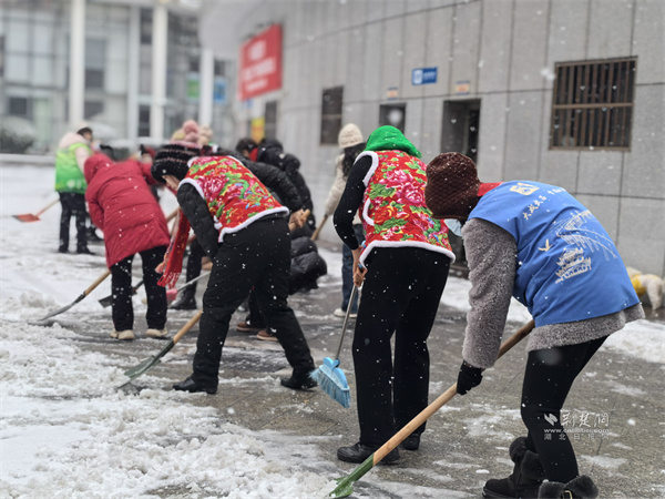 雪情就是命令,保障安全就是責任。社區(qū)工作人員率先上陣,分工協(xié)作、默契配合,揮舞鐵鍬鏟除路面積雪薄冰。與此同時,轄區(qū)各小區(qū)物業(yè)同步響應(yīng),組織人員對小區(qū)主干道、單元門口、消防通道等重點區(qū)域開展清掃作業(yè),一邊撒布融雪鹽加速冰層融化,一邊在易滑路段鋪設(shè)防滑草墊,用扎實舉措筑牢安全防線。