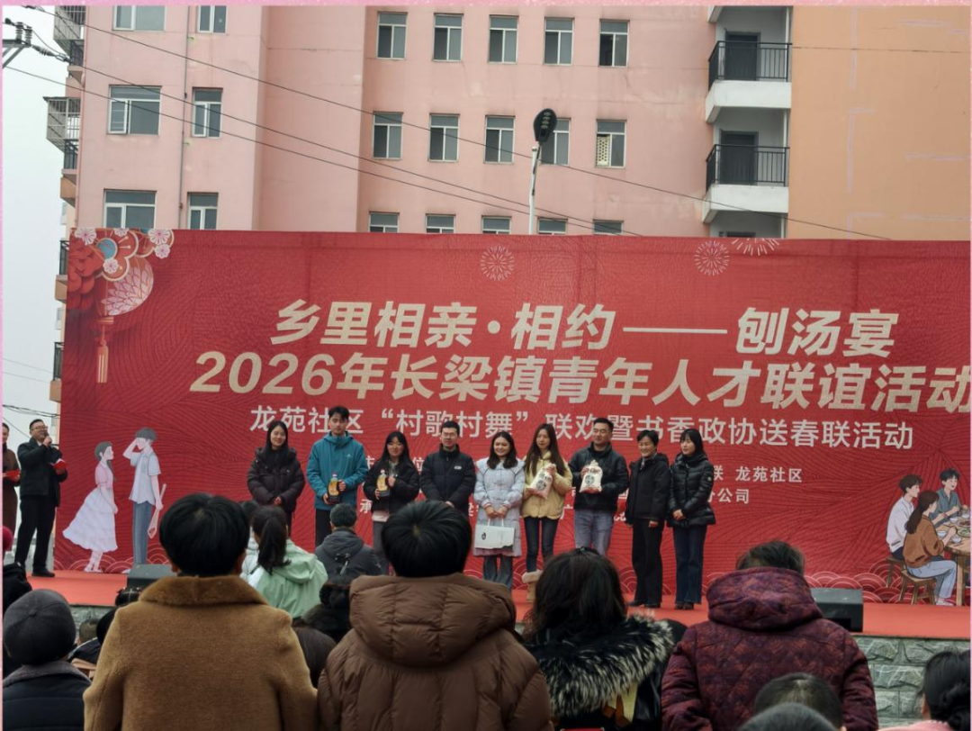 三里鄉(xiāng)小屯社區(qū)內(nèi),激昂的擊鼓表演吸引不少人駐足觀看,青年們通過(guò)擊鼓傳花等趣味游戲拉近距離、迅速熟絡(luò),大家主動(dòng)展示自我、踴躍互動(dòng),歡聲笑語(yǔ)縈繞全場(chǎng)。長(zhǎng)梁鎮(zhèn)龍?jiān)飞鐓^(qū)文化廣場(chǎng)上,村歌村舞輪番上演,書香政協(xié)送春聯(lián)傳遞祝福,青年們聚在“尋緣墻”前,共同感受濃濃年味,收獲友誼……