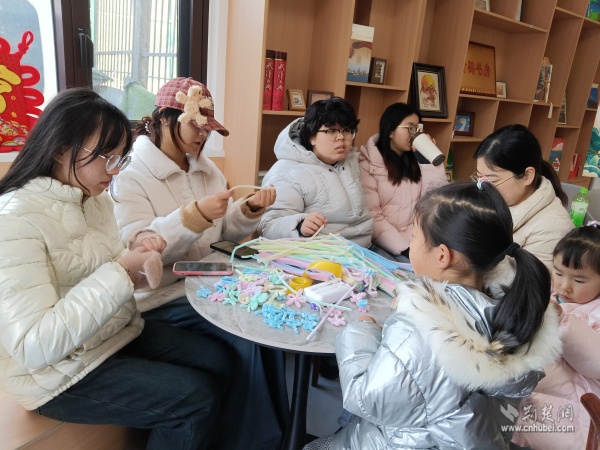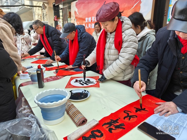 外場(chǎng)體驗(yàn)區(qū)更是精彩紛呈。在定制春聯(lián)區(qū),95歲高齡的社區(qū)居民黃勁勇老先生帶領(lǐng)首義書(shū)畫(huà)協(xié)會(huì)的老師們現(xiàn)場(chǎng)揮毫,筆走龍蛇。一副副對(duì)聯(lián)、一張張福字,承載著真摯祝福與新年期盼,吸引居民有序排隊(duì)領(lǐng)取。親子手工區(qū)、便民服務(wù)角與特色年貨市集同樣人氣高漲,居民在參與中感受文化、享受服務(wù)、樂(lè)購(gòu)年貨。