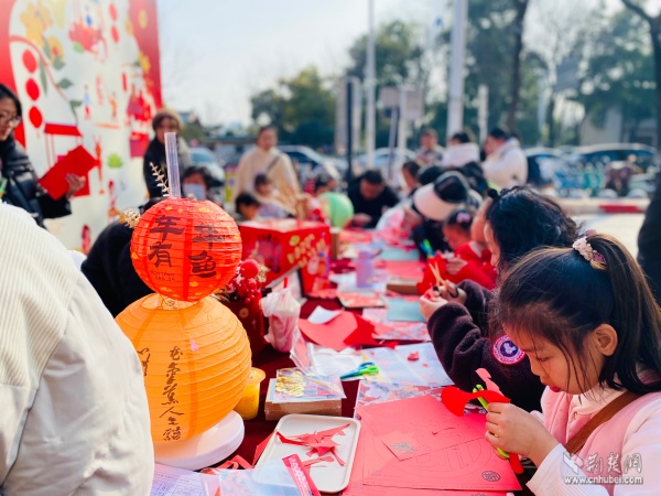現(xiàn)場(chǎng)節(jié)日氛圍濃厚,文化氣息撲面而來。居民們不僅可以便捷選購年貨,還能免費(fèi)參與多項(xiàng)文化體驗(yàn)活動(dòng)。書法老師帶領(lǐng)孩子們揮毫潑墨,一副副春聯(lián)和福字傳遞祝福;黃鶴書房設(shè)置的投壺游戲區(qū),讓市民在趣味中重溫傳統(tǒng)年俗;非遺手作課堂內(nèi),搖錢樹制作、剪窗花等技藝吸引眾人親手嘗試,近距離感受非遺魅力。市集匯聚30余家品牌商戶,商品涵蓋生鮮食品、休閑零食、健康禮品、文創(chuàng)產(chǎn)品等,充分滿足了居民“一站式”購齊年貨的多元需求,真正實(shí)現(xiàn)便民與惠民相統(tǒng)一。