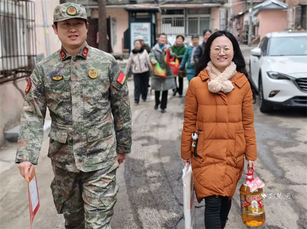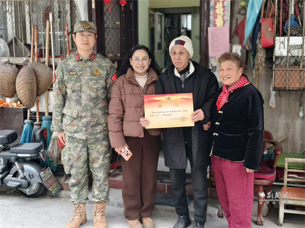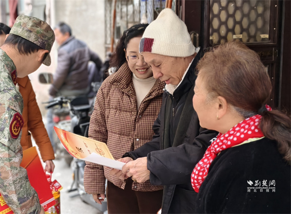 荊楚網(wǎng)(湖北日報網(wǎng))訊(通訊員 蘇楚雄 鐘霓 游薇 侯本瑞)1月29日,武昌區(qū)楊園街道電力新村社區(qū)鑼鼓聲響、熱鬧非凡。街道人武部、退役軍人服務(wù)站和社區(qū)工作人員組成“報喜小隊”為現(xiàn)役軍人家屬送去子女在部隊榮獲的“四有”優(yōu)秀學(xué)員榮譽證書,并送上慰問物資,傳遞對軍屬的崇高敬意和誠摯關(guān)懷。