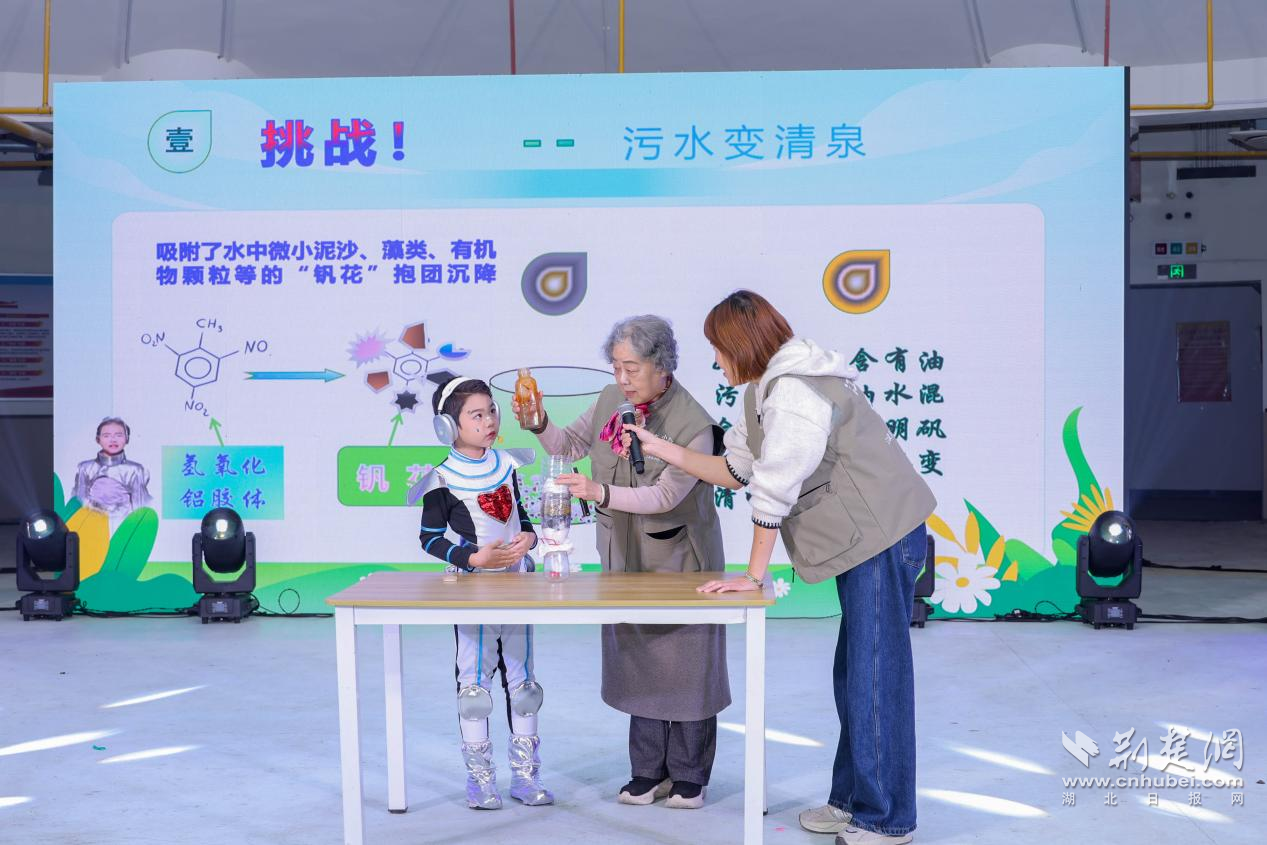 演出結(jié)束后,科普專家熊永紅教授和劉漢生老師開展趣味小論壇,進(jìn)一步延伸劇中知識點(diǎn)。熊教授現(xiàn)場復(fù)刻“污水變清水”實(shí)驗(yàn),讓孩子們直觀感受凈水原理;劉老師則結(jié)合江漢湖泊生態(tài)解答“江漢魚是否只屬于江漢區(qū)”的問題,并分享專屬繪本,引導(dǎo)孩子在互動中理解科學(xué)。