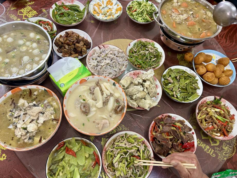 中午時(shí)分,食堂里歡聲笑語,其樂融融。老人們圍坐在一起,共進(jìn)團(tuán)圓飯。桌上菜品葷素搭配,營養(yǎng)均衡,還有熱氣騰騰的燒麥、松軟的餅子等手工面點(diǎn),既顧及了老人們的口味,也體現(xiàn)了服務(wù)的細(xì)致。大家一邊品嘗著可口的菜肴,一邊親切地拉著家常,滄桑的臉上洋溢著幸福的笑容。