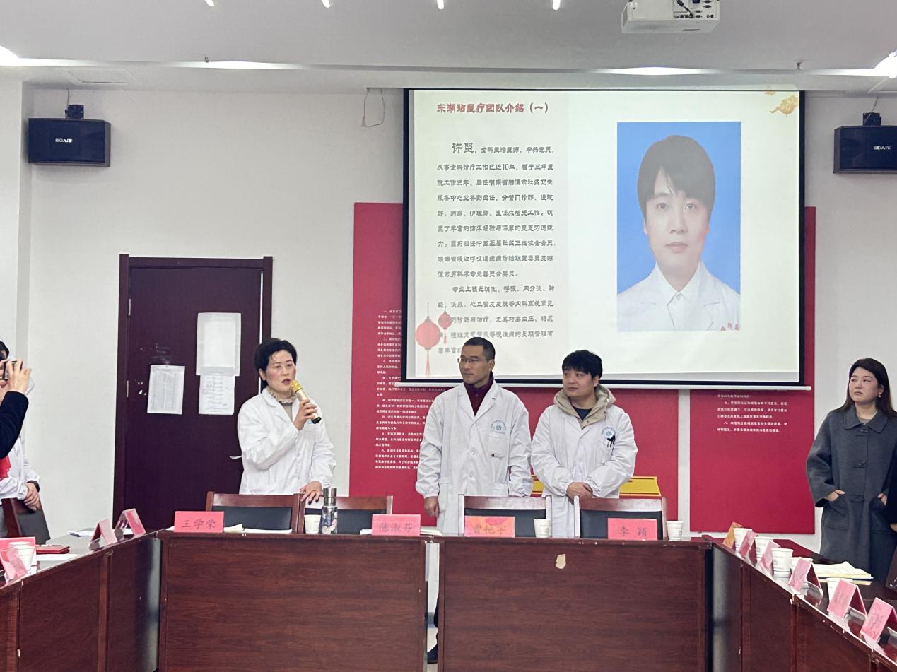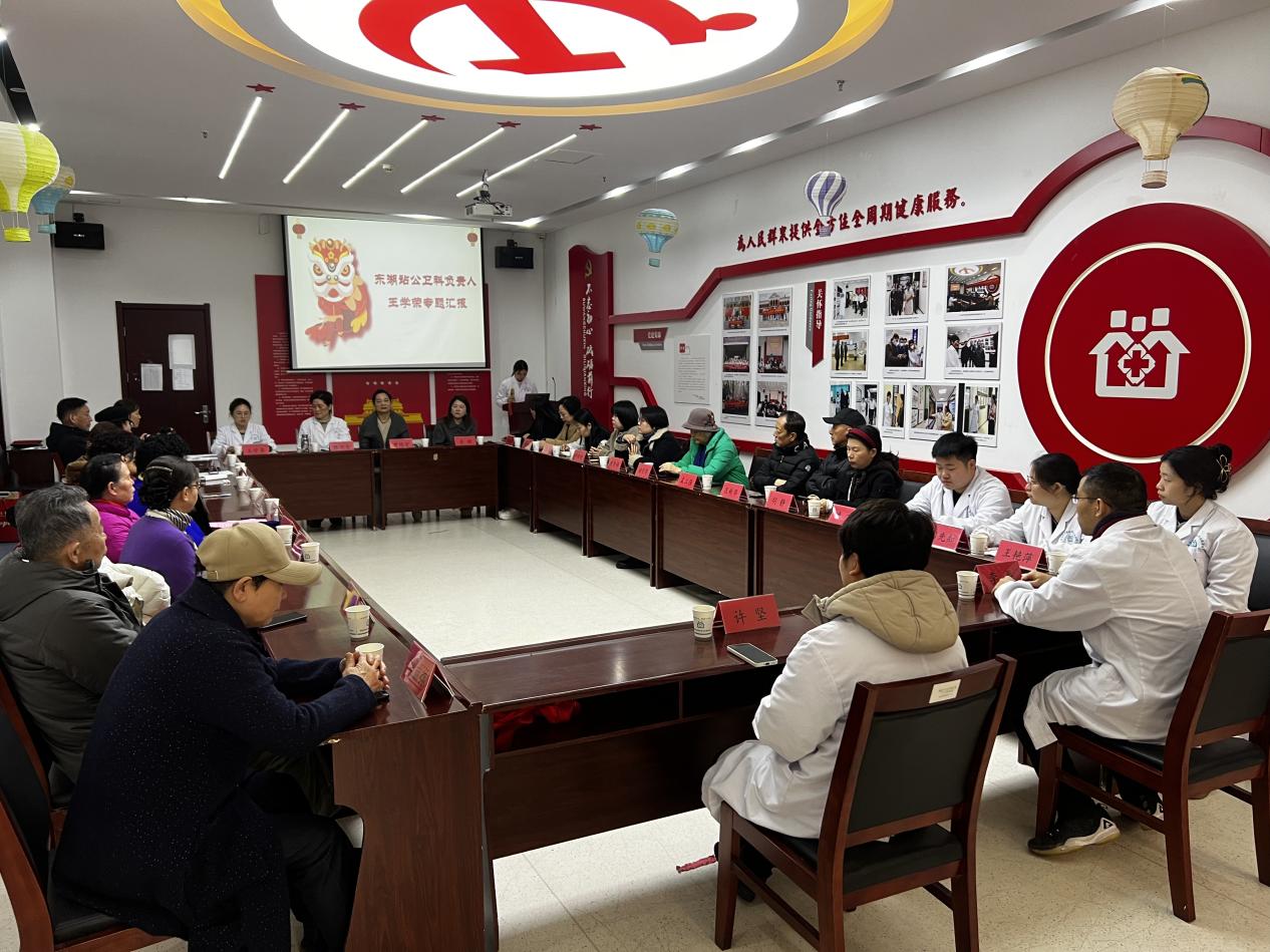 會議伊始,東湖社區(qū)衛(wèi)生服務站黨支部書記、站長陳淑芬發(fā)表致辭,對健康大使們在基層健康服務工作中的辛勤付出與突出貢獻致以感謝并給予高度肯定,同時對2026年健康大使專項培訓學習計劃進行部署。隨后,站內(nèi)公衛(wèi)科負責人王學榮作工作匯報,全面梳理2025年5月健康大使隊伍組建以來的工作成果、特色亮點與現(xiàn)存問題,進一步明確2026年隊伍規(guī)范化管理及健康服務工作的整體思路與實施方向。會議還正式介紹了3名健康管理團隊長,以及全科、中醫(yī)科兩名核心主治醫(yī)師,清晰劃分各方工作職責,確立“醫(yī)療團隊+團隊長+健康大使+社區(qū)”四方協(xié)同對接工作機制,為基層健康服務高效開展筑牢制度基礎。