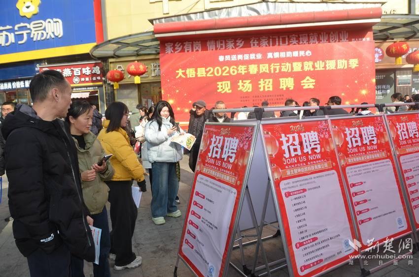 荊楚網(wǎng)(湖北日?qǐng)?bào)網(wǎng))訊(通訊員 易榮波、李怡、雷鈴)2月12日,大悟2026年春風(fēng)行動(dòng)暨就業(yè)援助季現(xiàn)場(chǎng)招聘會(huì)在該縣府前街黃商廣場(chǎng)舉行。