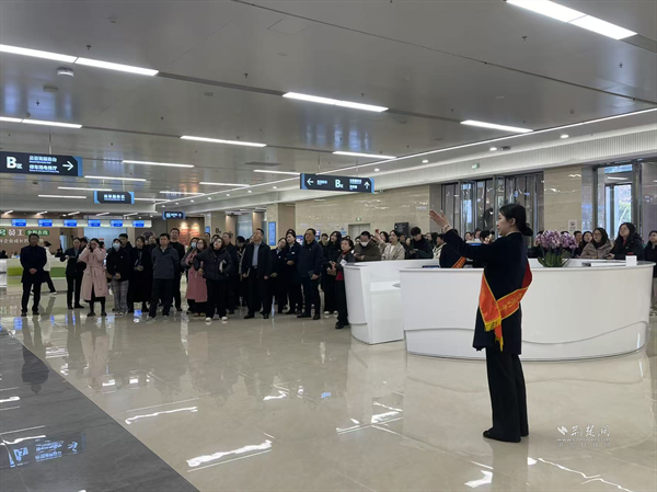 實訓(xùn)開篇,全體參訓(xùn)人員實地觀摩區(qū)政務(wù)服務(wù)中心大廳一、二樓層。工作人員圍繞功能分區(qū)規(guī)劃、窗口優(yōu)化布局、智能設(shè)備運維及轉(zhuǎn)型改革創(chuàng)新舉措展開細致講解,通過現(xiàn)場演示、流程拆解等方式,讓參訓(xùn)人員直觀掌握大廳運營邏輯與服務(wù)細節(jié),為精準(zhǔn)提升服務(wù)質(zhì)效夯實實踐基礎(chǔ)。