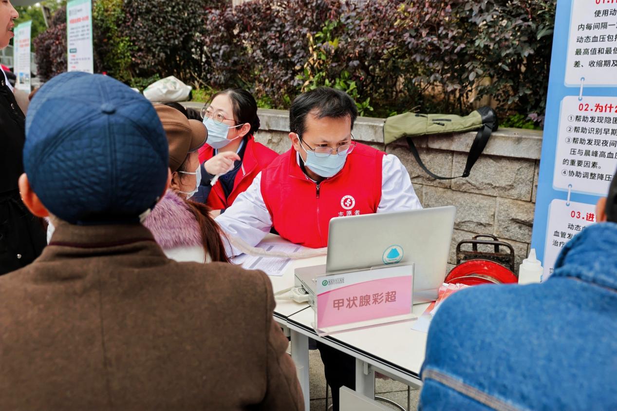 測起來,知健康。武漢市中心醫(yī)院和東湖社區(qū)衛(wèi)生服務(wù)站的醫(yī)護(hù)人員組成健康小分隊(duì),提供免費(fèi)血壓、血糖測量及健康咨詢服務(wù),守護(hù)居民健康。