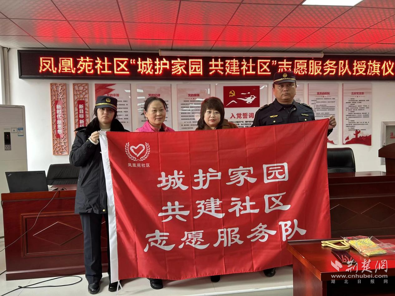 現(xiàn)場為“城護家園 共建社區(qū)”志愿服務(wù)隊授旗。通訊員供圖
