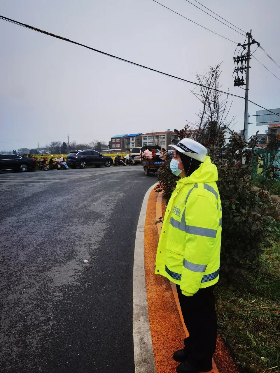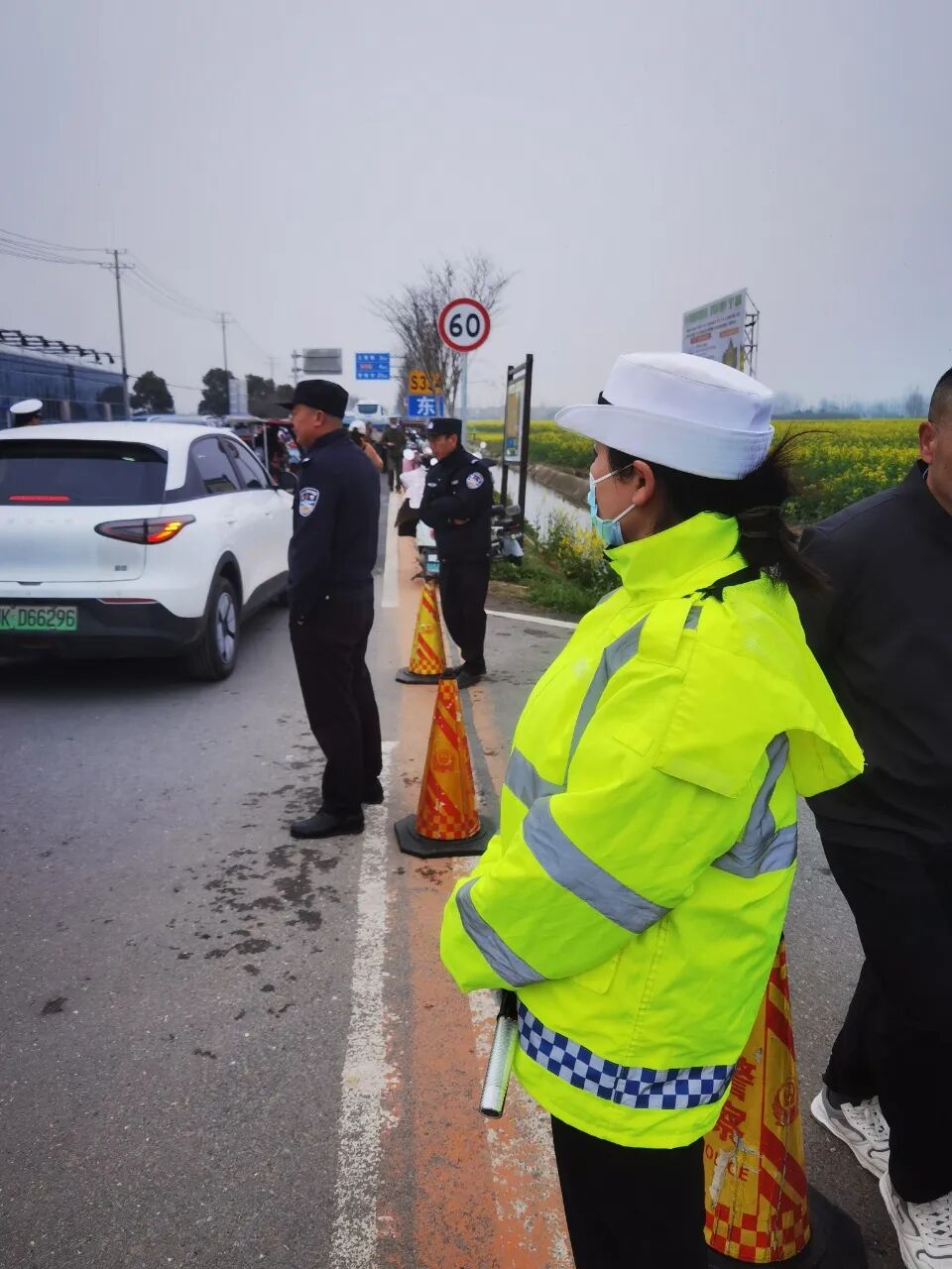 堅守崗位的女警們巾幗不讓須眉,與男民警并肩作戰(zhàn),風(fēng)餐露宿,在花海旁的道路上默默堅守。她們耐心指揮交通、熱情解答游客咨詢,細(xì)致開展交通安全宣傳,向過往群眾講解“一盔一帶”、安全行車等知識,提升群眾交通安全意識。忙碌間隙,大家以警車為桌、以路面為席,簡單就餐后迅速返回崗位,用實際行動詮釋責(zé)任與擔(dān)當(dāng)。
