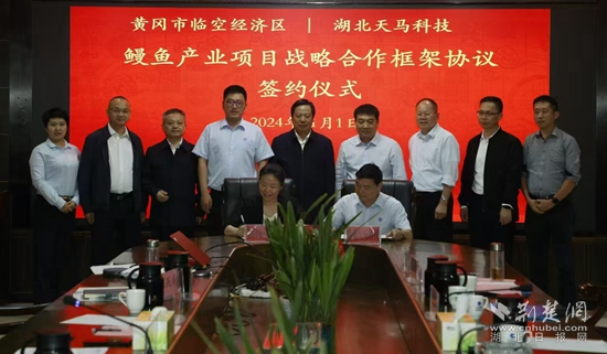 2024年11月1日,產業(yè)鏈領導工作小組趕赴福建與天馬科技集團洽談合作,并順利簽訂戰(zhàn)略合作協議。根據協議,天馬科技集團將在未來三至五年內在黃岡繼續(xù)擴大養(yǎng)殖規(guī)模,在現有基礎上擴大一倍,屆時在黃岡總投資將達到20億元,養(yǎng)殖面積超過兩千畝,年產鰻魚兩萬噸。同時,新建一家烤鰻加工廠,并積極對接花湖機場,讓活鰻直接上飛機出口。