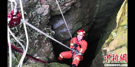 中新網(wǎng)咸寧3月11日電 (朱燕林 范斌斌)湖北咸寧一男子因好奇,攀爬山洞探險,因體力不支被困洞底。當?shù)叵绬T接警后,利用救援繩索將其成功營救出山洞。